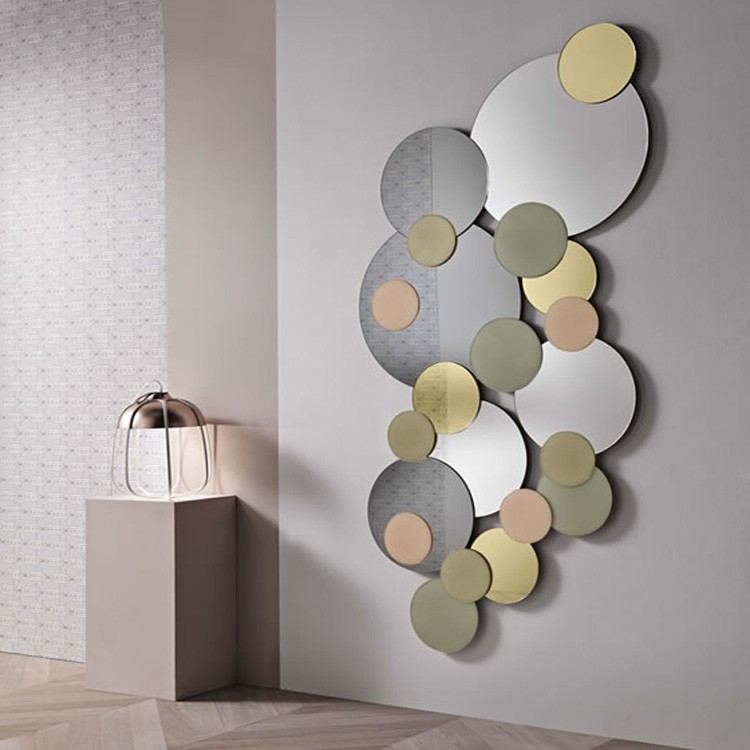 Atomic Mirror by TonelliAtomic is a wonderful statement mirror made up of mirrored glass discs of different sizes and colors. This contemporary mirror rouses images of floating bubbles as the individual discs appear to be floating as suspended in the air. Two sizes of Tonelli mirror are available with the choice of vertical and horizontal hanging. This modern mirror is sure to cause a stir and create conversation in any environment.   Atomic