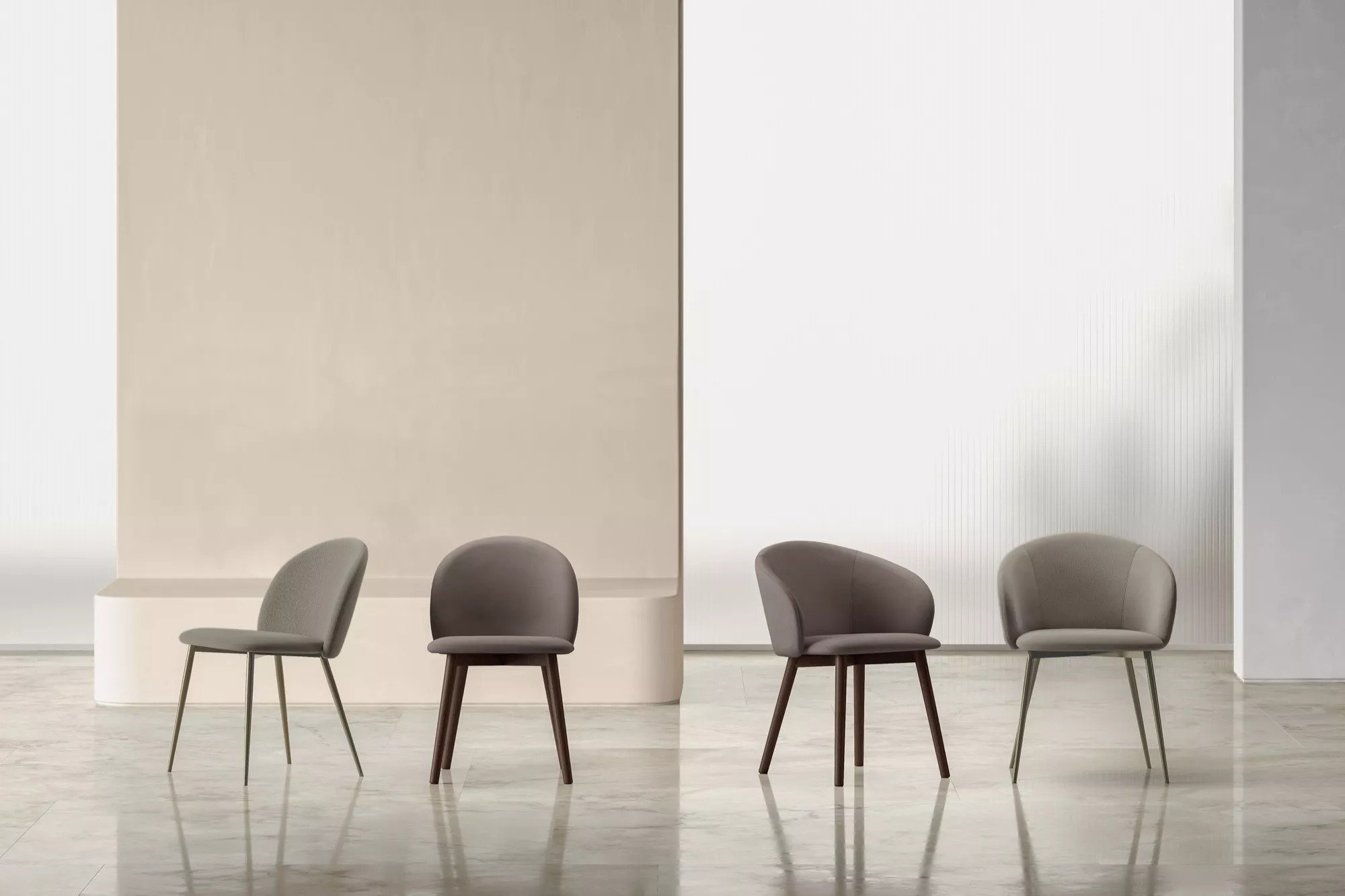 The Rebecca chair, designed by Carlesi & Tonelli, is a refined blend of comfort and sculptural elegance. Its warm wooden shell is wrapped in plush upholstery, creating an inviting seat that feels both intimate and stylish. Rebecca’s slender legs come in refined solid wood for timeless appeal or lacquered metal for a lighter, contemporary touch, offering versatility across interiors. Available with or without armrests, the chair combines tactile richness with thoughtful proportions, making it perfect for dining rooms, lounges, or bespoke hospitality spaces. A beautifully balanced design that embodies Italian craftsmanship and enduring sophistication.
