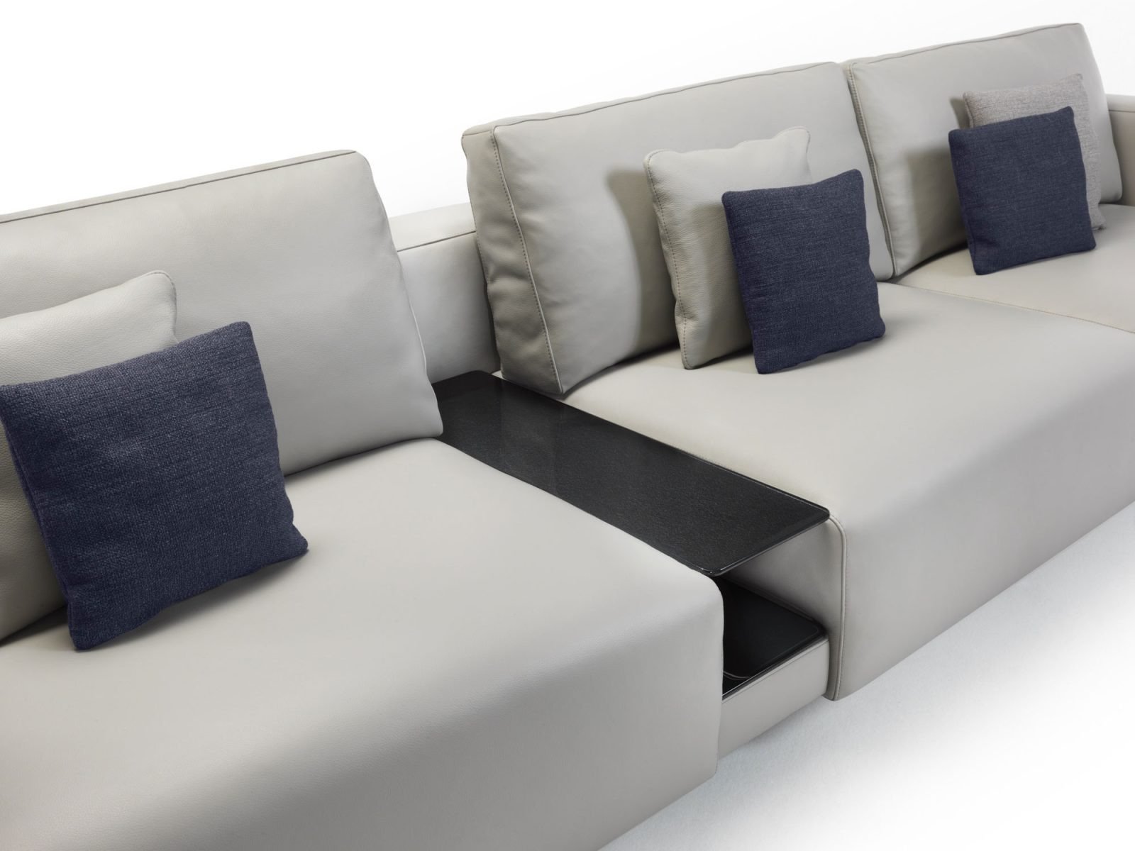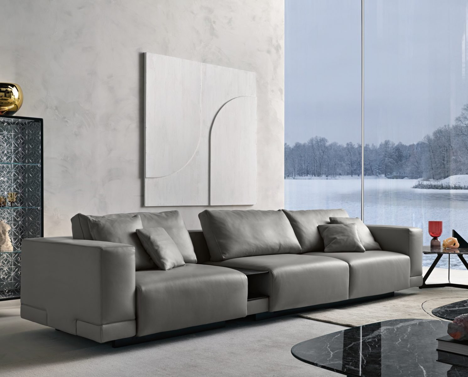 The Carrara sofa by Fiam Italia, seamlessly blends form and function. Its modular design allows for personalized configurations, adapting effortlessly to any space. The multilayered internal structure ensures durability, while elastic straps in the seat provide comfort. Sink into the seat cushion, padded with polyurethane and memory foam. The back cushions, filled with goose and duck down, cradle you luxuriously. The raised structure adds elegance, and upholstery options in leather or fabric, let you express your style. Inspired by Carrara marble quarries, this sofa marries geometric precision with opulence. A statement piece that invites relaxation and admiration.