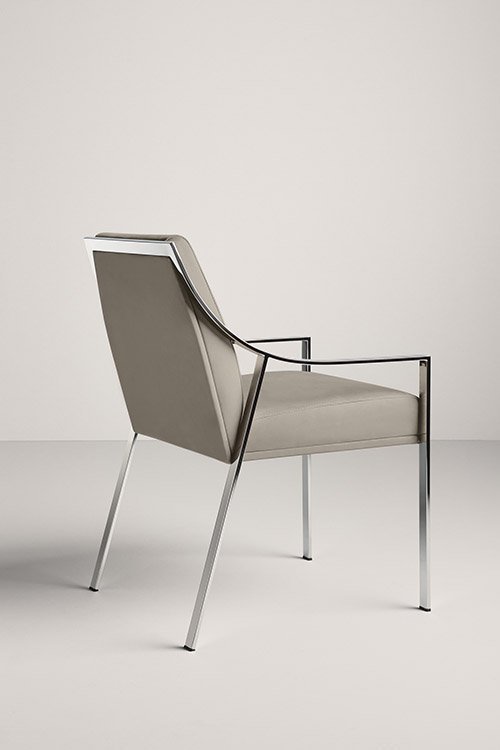 The frame and legs of the Aileron armchair come in polished chrome or lacquered steel. The seat, back and lateral cushions are padded in flame-retardant polyurethane foam and upholstered in leather or fabrics from our collection. Aileron covers a range of seats including a lounge chair and armchair characterised by an essential curved steel structure with fluid, harmonious lines. The seat and back create a product whose comfort and style complement each other.