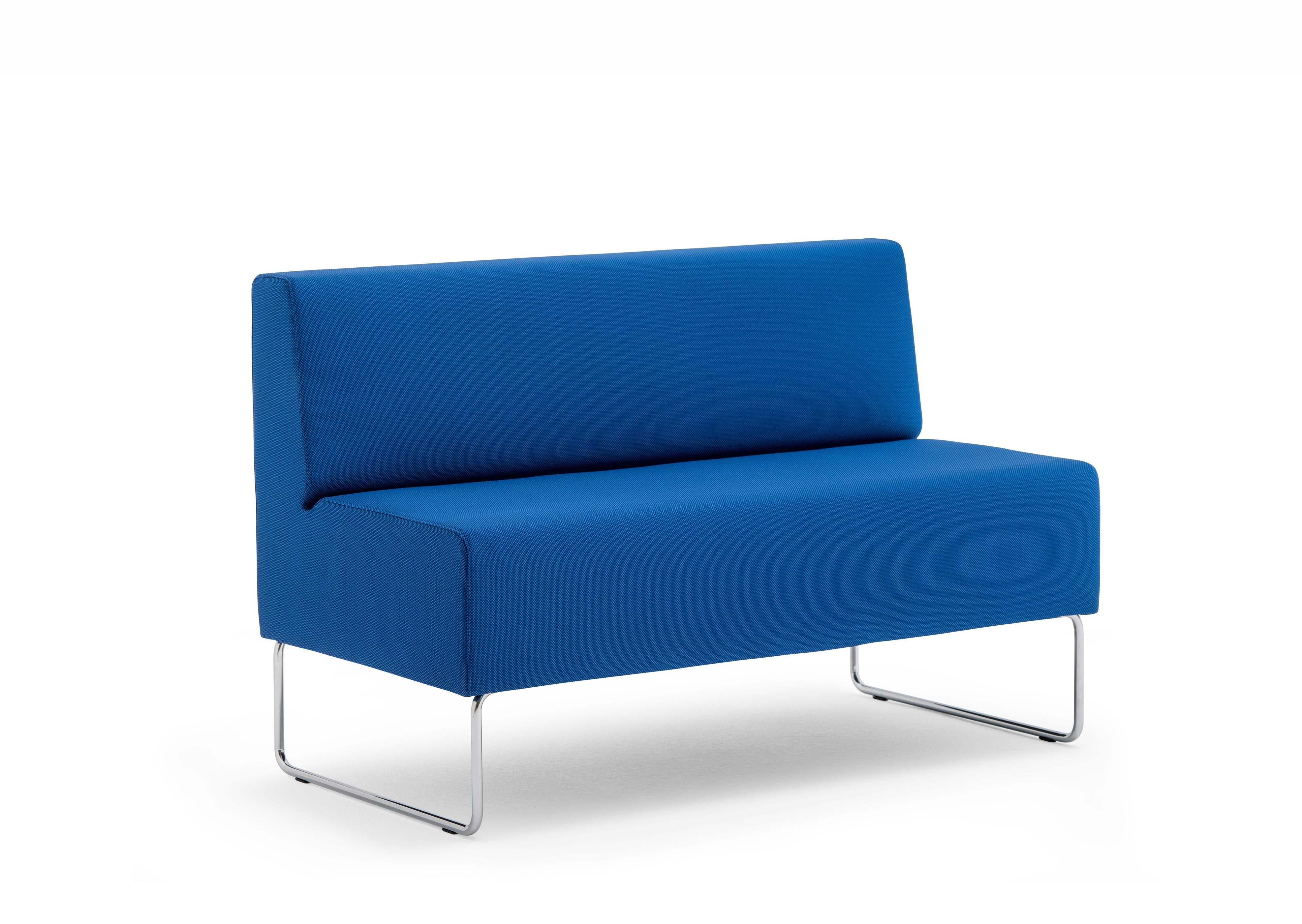 Modular system, consisting of seating elements that offer different combinations. Steel tube frame Ø 16mm in chromed finish. The seat is completely upholstered with fire retardant polyurethane foam which can be covered with fabric or simil leather. Optional: linking device.