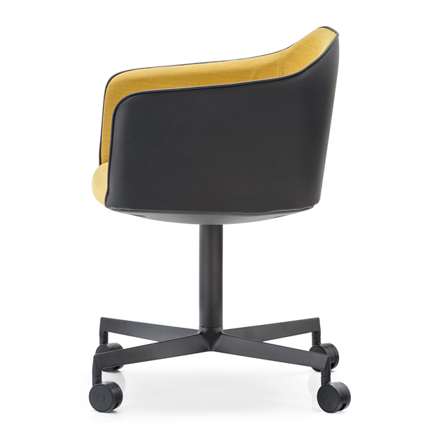 A modern office chair with a bucket style seat that offers comfort and support. The seat is upholstered in fabric, leather or simil leather (see samples below). aluminum base with a polished finish or powder coated (black or white). The prices listed are for the same color inside and outside, if you require 2 different colors (as shown in the image) please contact us for a specific quote (there is a small surcharge).