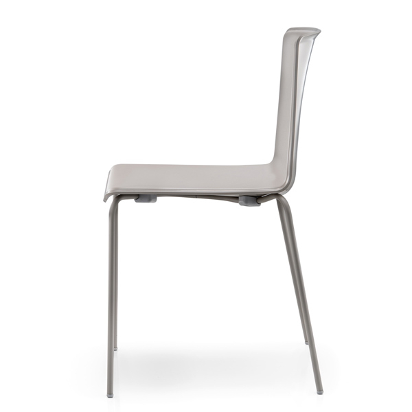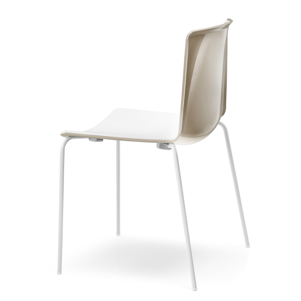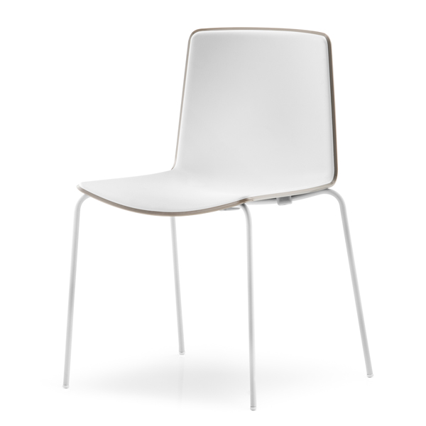 Tweet consists of an injection moulded polypropylene shell on steel tube legs. Available in lots of different color combinations enabling customisation. The seat has a matt front and glossy back which can be the same color, or white on the front with a colored back. The legs can be chromed or powder coated in various colors.