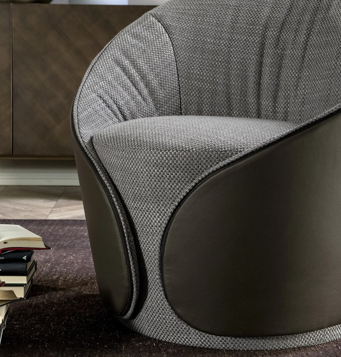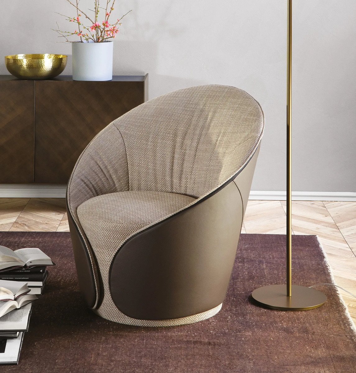 The Mama armchair, designed by Angelo Tomaiuolo for Tonin Casa, is a refined expression of contemporary Italian seating. With its inviting, enveloping silhouette, Mama brings sophistication and comfort to modern interiors. Crafted in Italy, the armchair features a premium combination of high-quality leathers, eco-leathers, nubuck, and selected fabrics that can be mixed for bespoke upholstery options, all reflecting meticulous material selection and craftsmanship. The design balances elegant aesthetics with tactile comfort, making it suitable for living rooms, lounges, and curated spaces where style and relaxation meet. Mama is a statement of timeless design and artisanal quality.