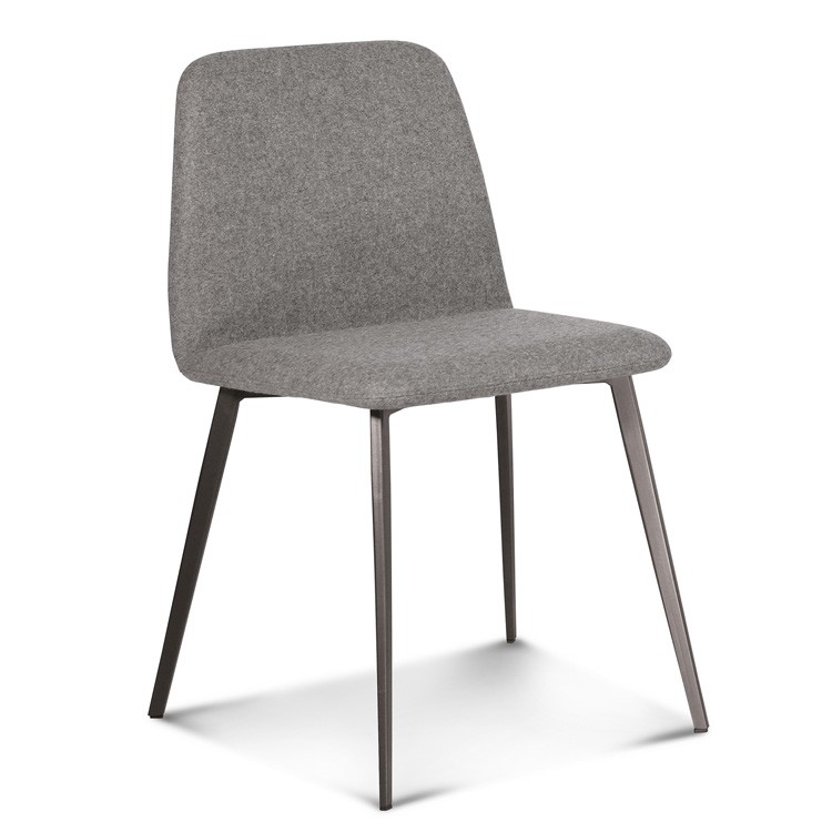 A beautiful modern dining chair with a rounded seat that emits a soft, feminine feel. Metal frame and legs lacquered in a wide range of colors. Padded and upholstered seat in a choice of fabrics or leather. Bardot has a soothing presence and the flexibility to compliment any home.