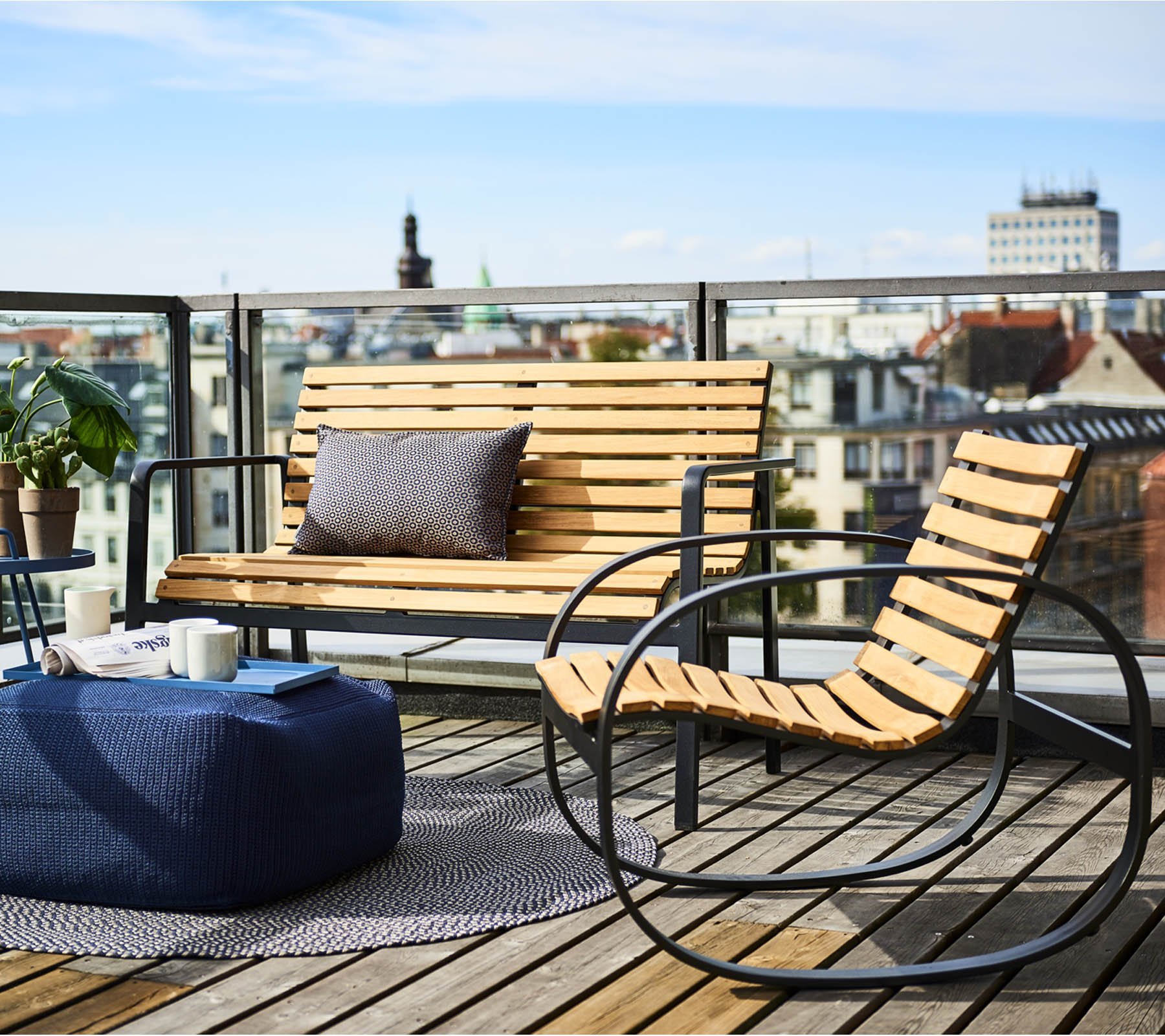 Parc rocking chair is a refined and exclusive chair of design furniture in teak designed by the Danish designduo Foersom & Hiort-Lorenzen MDD. The chair is "bodyfitted" so it follows the shape of the body and gives an extremely high comfort. The Parc series is suitable for both small as well as large outdoor spaces due to its different design options, from bench to rocking chair and dining chairs. Parc will fit any space due to its choice of natural material and its exclusive design. Parc is produced in certified teak and powder-coated aluminum which ensure a resistant surface. Cane-line teak is approved and cultivated according to SVLK certification system.