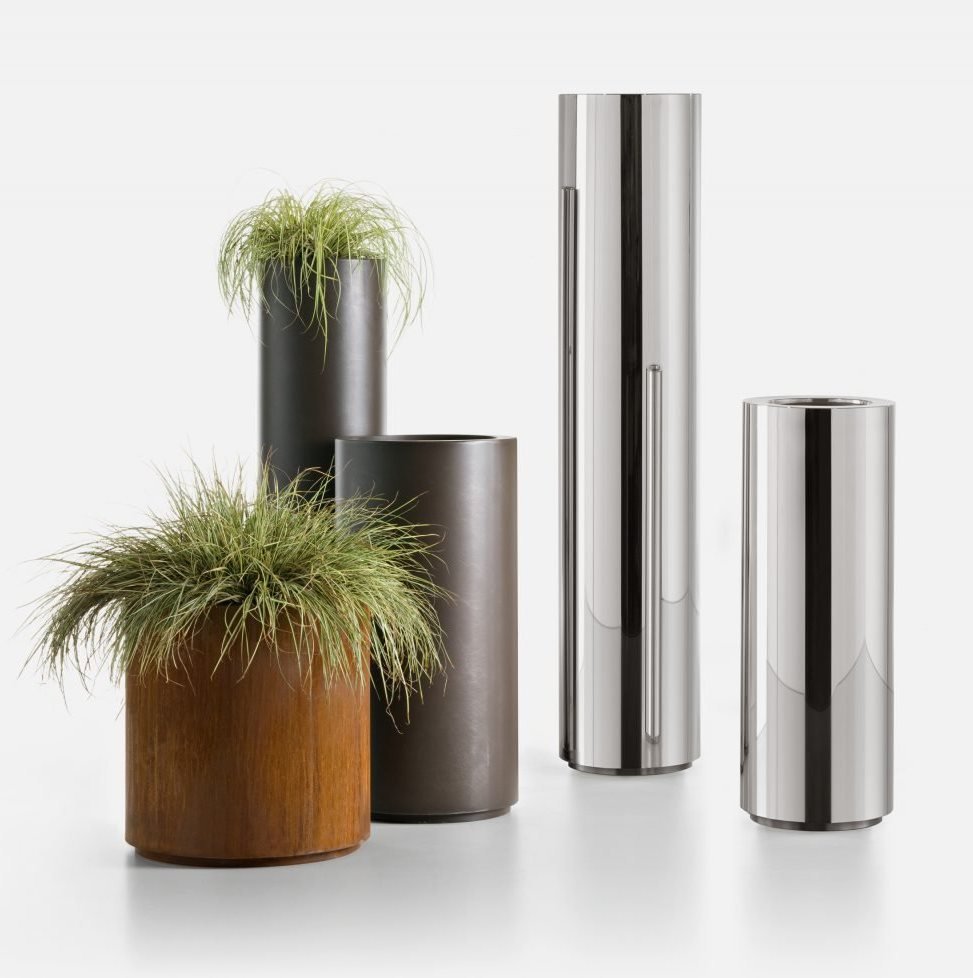 A pure cylindrical shape comes in De Castelli metals and finishes for a series of cachepots with abounding stage presence. In their linear simplicity, these objects become landmarks for the home, not just accessories but also cardinal points that orient the space. In different heights and diameters, they stand alone or make up multi-faceted sets.