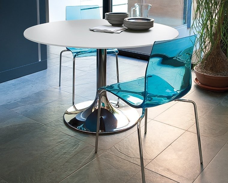 A simple, sleek modern dining chair with an acrylic seat and steel tube legs with a satin matt finish. Stackable up to 4 chairs. Other legs styles are available as is a matching stool, see related products below.