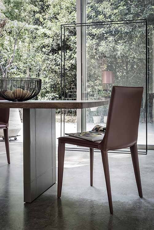 A collection of chairs noteable for a unique mechanism within the chair that allows the backrest to flex. The chair frame is made from steel and is padded and fully upholstered in '02 Leather or '01 Full Grain Leather' (see corresponding color charts below for all color options).