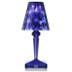 Battery is an iconic compact lampshade. It is made from transparent PMMA and truly embodies innovation, being 100% rechargeable when plugged in and with a battery life of up to 8 hours. This allows it to be moved around extremely easily: perfect for use in outdoor restaurants and cafés. Battery features a crystal-colored shade with a prismatic surface that throws out enchanting patterns of light, and a structure made from three different sophisticated metallic colors.