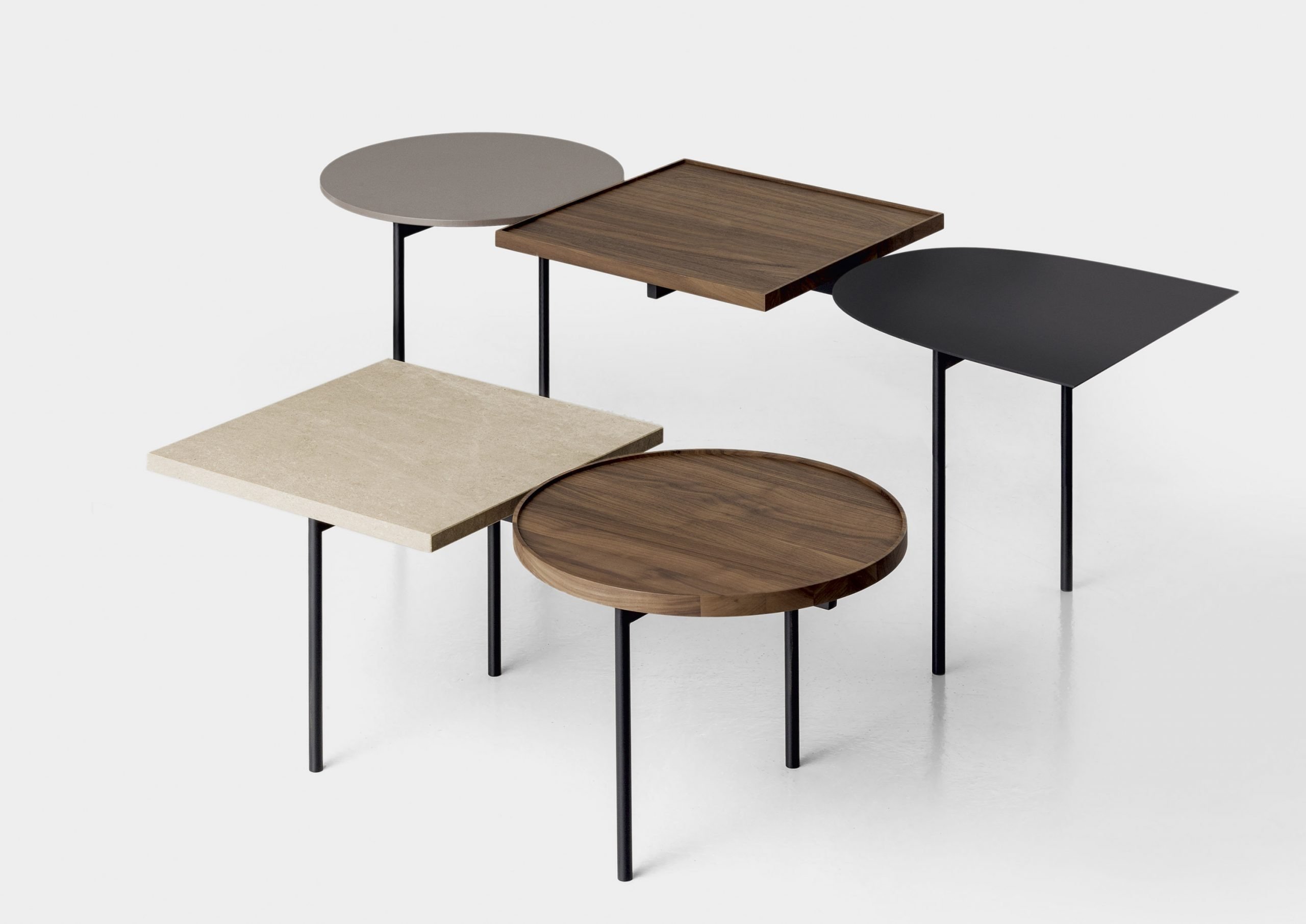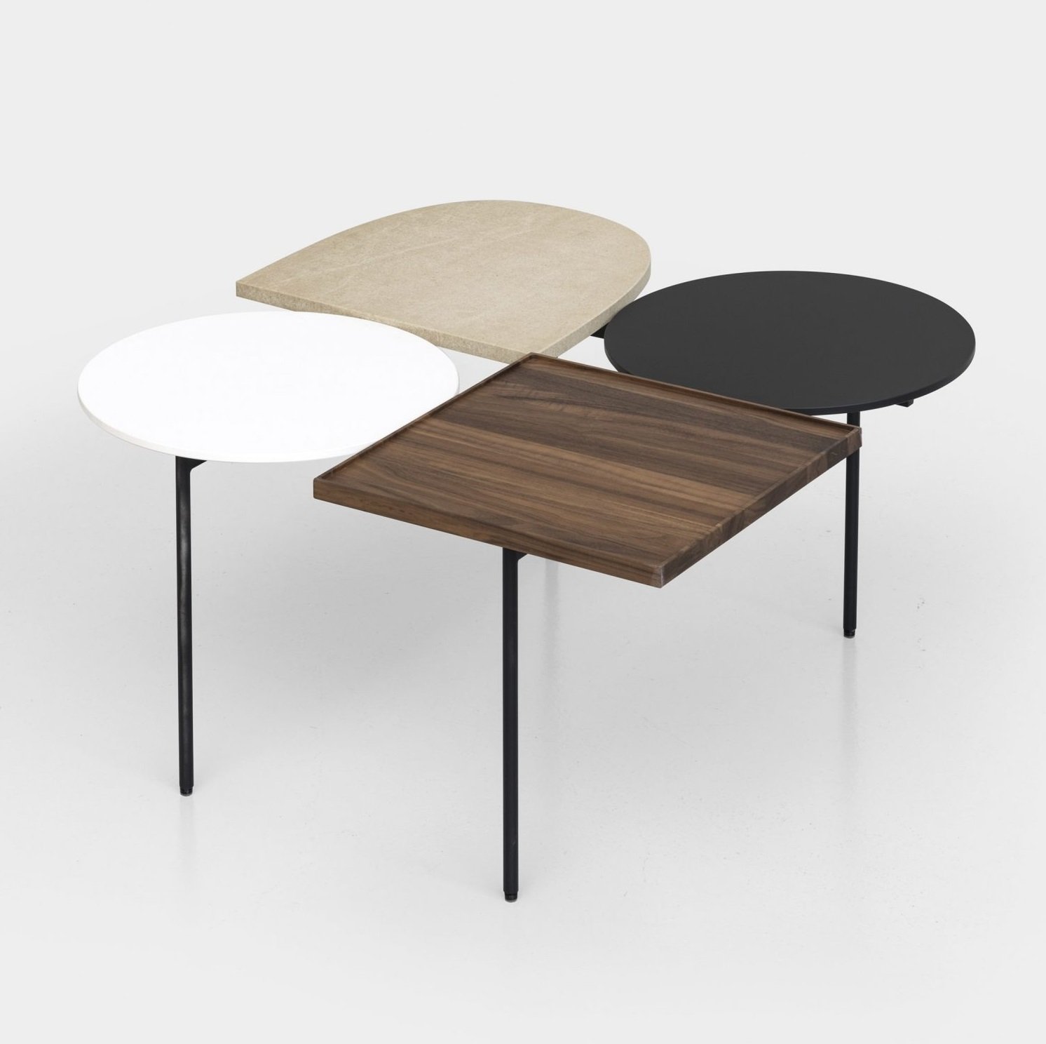 The Constellations coffee table, designed by Luca Nichetto for Kristalia in 2018, celebrates poetic geometry and modern craftsmanship. Inspired by the artistic outlook of Joan MirĂ² and Alexander Calder, its composition combines squares, circles, and semi-ellipses atop a slender metal frame to evoke suspended forms in space. The wooden version features finely finished wood tops paired with a light, minimal steel structure, blending warmth and structural clarity. Available in modular compositions with two to four surfaces, Constellations offers versatile styling for contemporary interiors. This expressive piece transforms a functional surface into sculptural art, marrying Italian design heritage with everyday use.