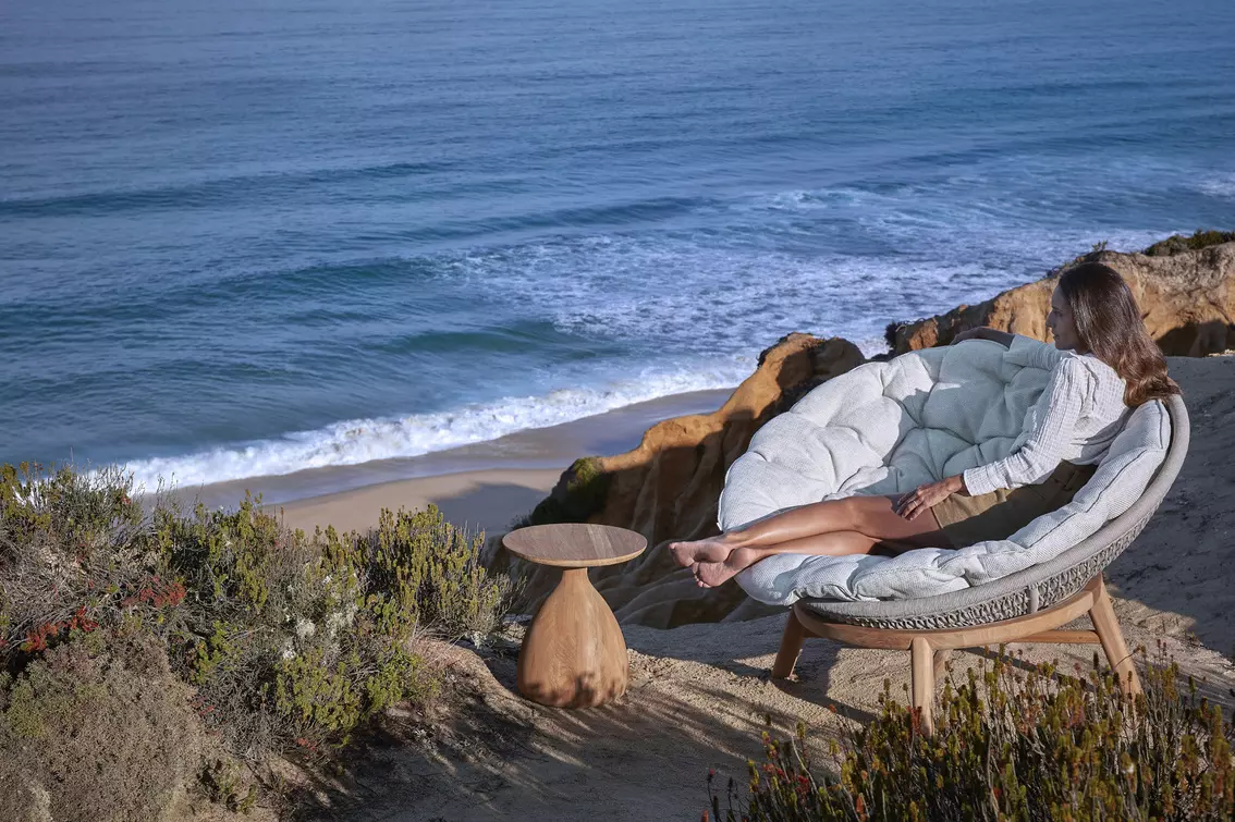 The Sandua chair by Manutti is a contemporary outdoor furniture piece known for its elegant design and exceptional comfort. Designed by Robin Hapelt, the chair combines a durable teak frame with luxurious, weather-resistant upholstery. Its clean lines and minimalist profile make it a versatile addition to any outdoor space, whether it's a modern terrace or a tranquil garden. The chair's ergonomic shape and plush cushions ensure a relaxing seating experience, while its durable materials guarantee longevity even in challenging weather conditions. Manutti's Sandua chair seamlessly blends form and function, offering a chic and inviting seating solution for outdoor lounging and entertaining.