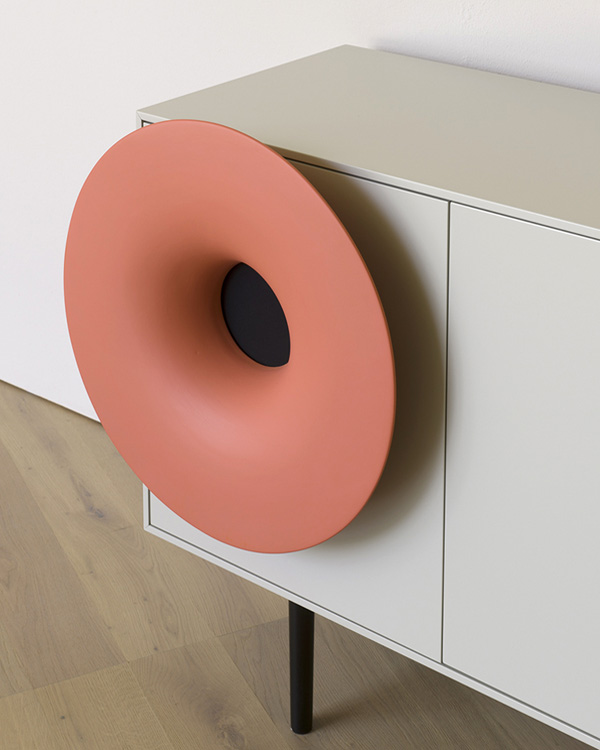 A unique buffet/cabinet that turns the traditional concept of furniture on its head. Caruso has a wooden body with a painted or veneered finish and a ceramic trumpet speaker. Caruso includes a HI-FI system with Bluetooth 4.0 connection offering a rich high performance sound. All models have matt black legs.