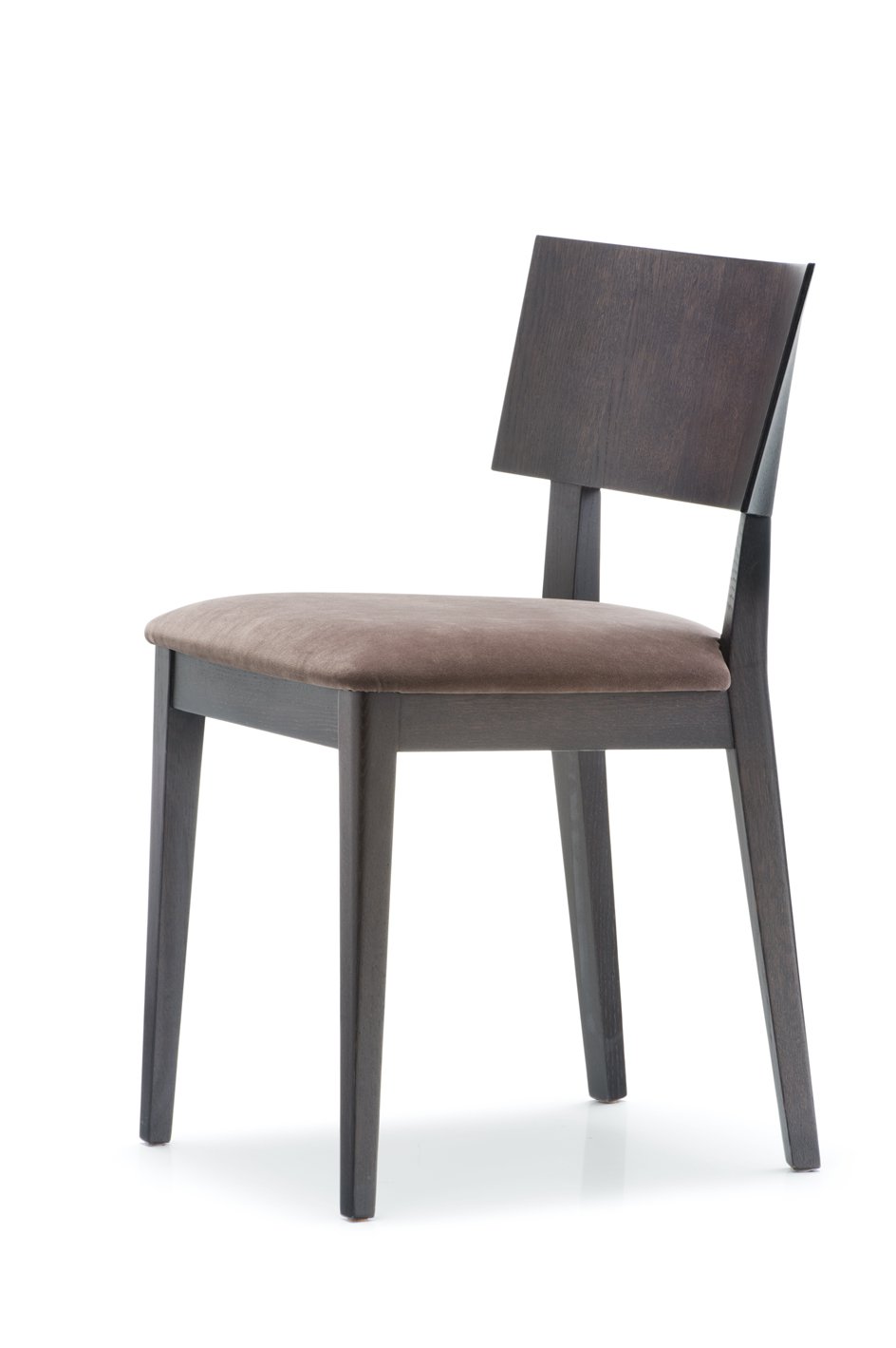 Elle is elegant and ergonomic. The front legs are tapered, while back legs are beveled. Available in bleached or wenge stained oak. Priced here with Category A Fabric and Faux (Simil) Leather, but also available in Category C, G, H, and P. Please call for that pricing. For a higher seat cushion, see Elle 452.