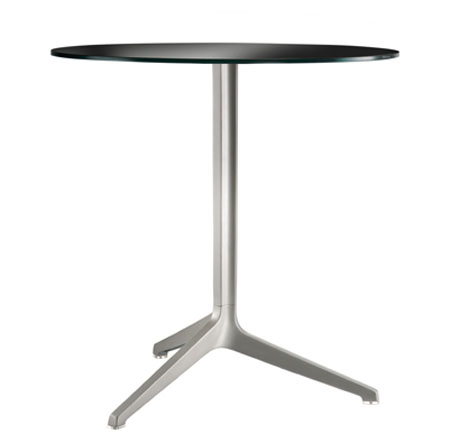 Consisting of a cast aluminum base with a matt aluminum column, this table is has a sleek modern look suitable for the home, office, or commercial environments. Available with a choice of colored solid laminate tops (12mm thick). An innovative catch system allows the top to fold down for ease of storage. Also available with a fixed top and with matching colored base, see the 'Contract Tables' document below for full details, and call or email us for a quote.
