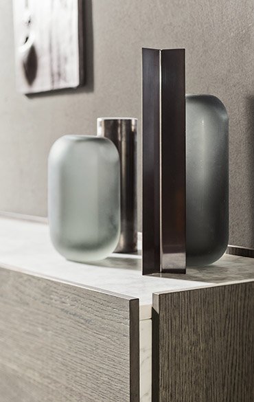Atlante is a sophisticated and versatile collection by Pianca. This line of units with regular and oversized drawers is designed to sit happily in the middle of a room.? With its elegant form, this almost seamless nightstand comes in a matt or high gloss lacquered finish. The drawers have finger grips into the sides for opening, making the side recesses that come in titanium, bronze, gold, or in any lacquered finish shine. What makes this design truly unique is the top that can be made in different marble options, transforming this chest into a luxurious bedroom piece or a wonderful living room showcase.