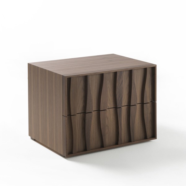 A funky end table/nightstand with 2 or 3 drawers with drawer decoration in solid canaletta walnut. A matching chest of drawers is also available, see related products below.