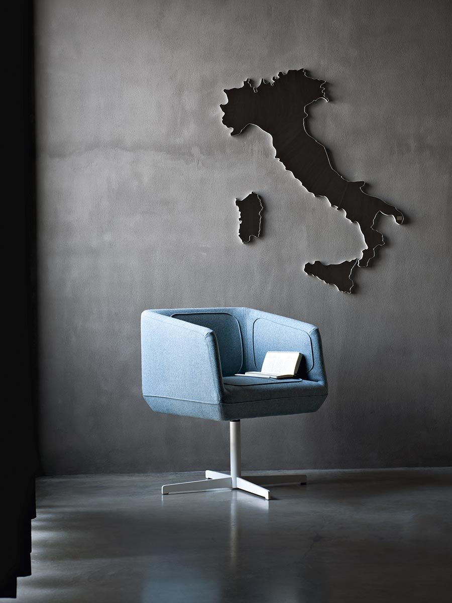 Dressed chair has its padding sewn directly into the covering, its aesthetic is drawn from the sportswear world, and resembles the look of technical apparel, giving the chair a contemporary touch that is complemented by its swiveling metal base. THIS PRODUCT IS DISCONTINUED.