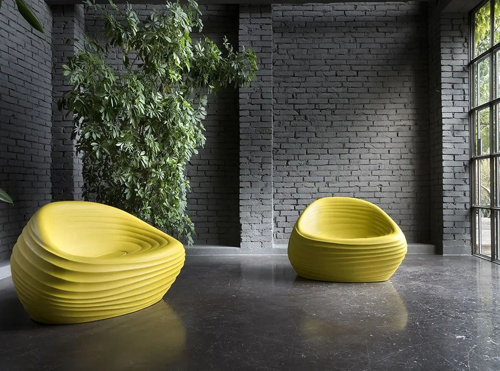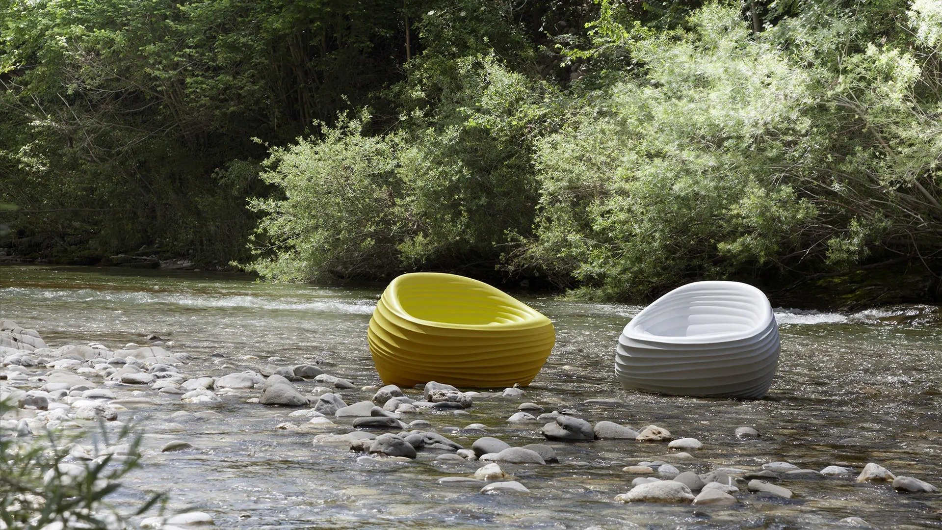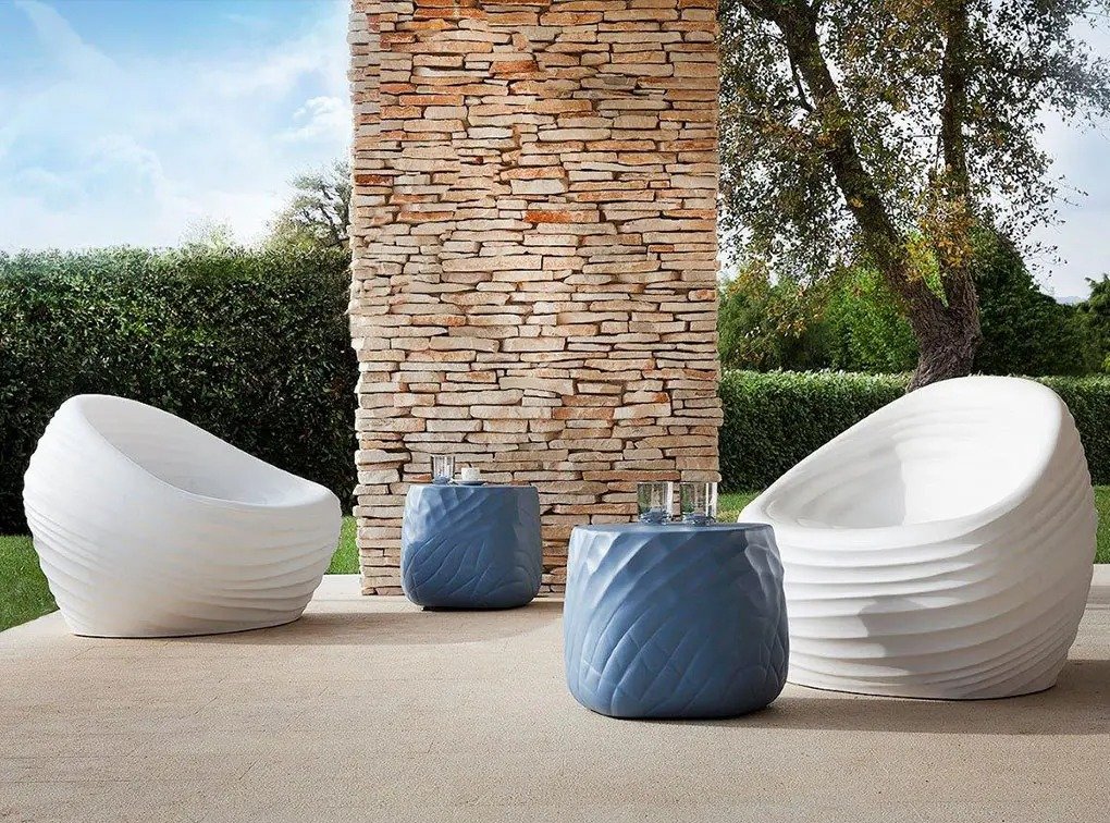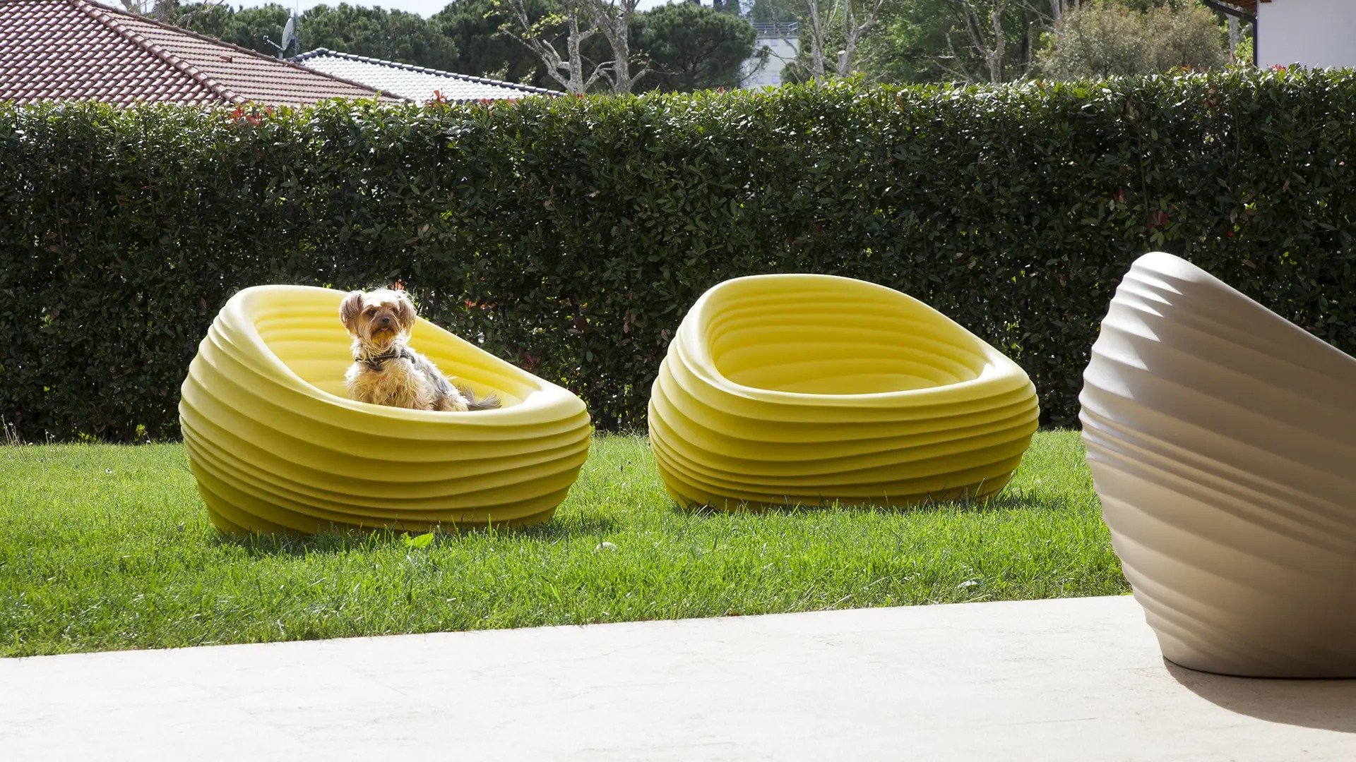 This modern lounge chair offers softness and comfort, it is very easy to move and is waterproof. The material soft touch plus is a bi-component molded polyurethane. The product obtained in the mould is formed by a core in soft, flexible polyurethane and an external polyurethane skin, colored, compact and elastic. The material is extremely resistant and fire retardant. Available in various colors and suitable for outdoor use.