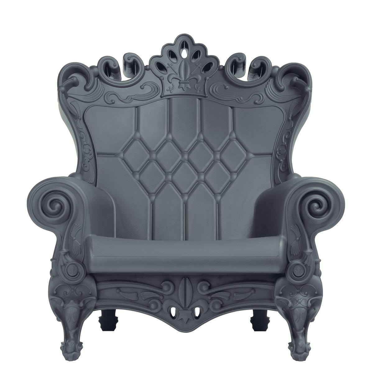 Queen of Love is a fascinating throne-like lounge chair with an ornate design inspired by Rococo designs of the past.